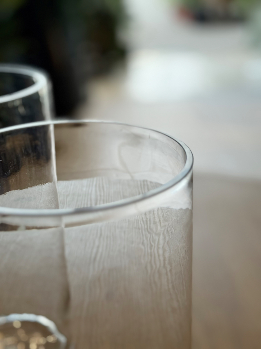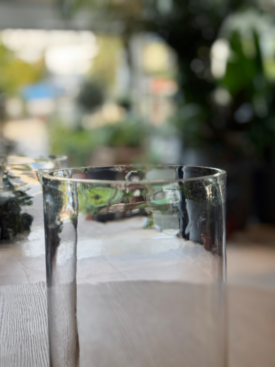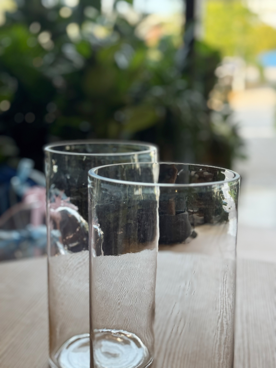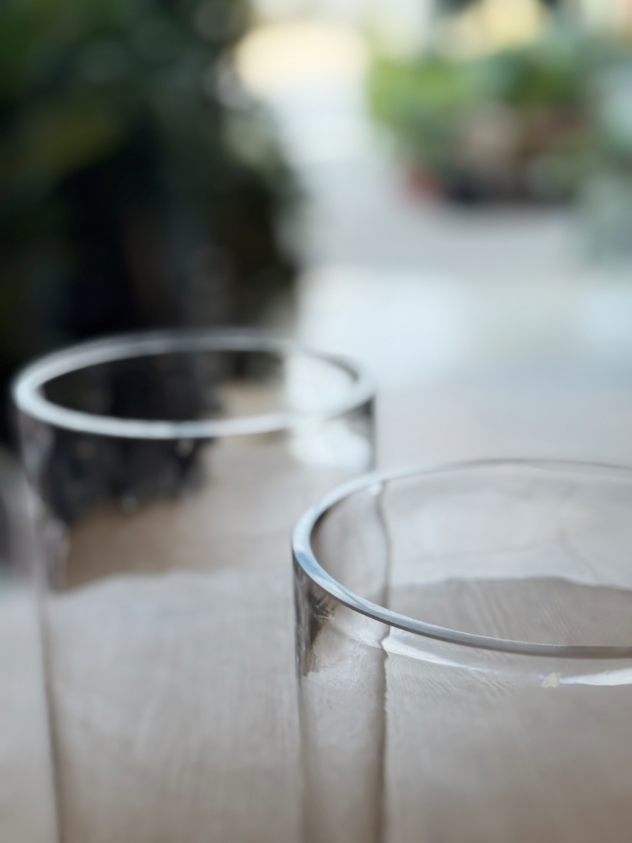 Το κυλινδρικό τους σχήμα αποπνέει ισορροπία και συμμετρία, ενώ η καθαρή, λεία επιφάνειά τους λειτουργεί σαν καθρέφτης της φύσης. Τοποθετημένα πάνω σε ένα ξύλινο τραπέζι, σε μια μαρμάρινη επιφάνεια ή δίπλα στο παράθυρο, αντανακλούν το φως με τρόπο σχεδόν ποιητικό. Είναι το είδος του αντικειμένου που δεν χρειάζεται τίποτα περισσότερο για να ξεχωρίσει· η απλότητα του είναι η ίδια του η πολυτέλεια.