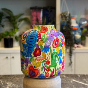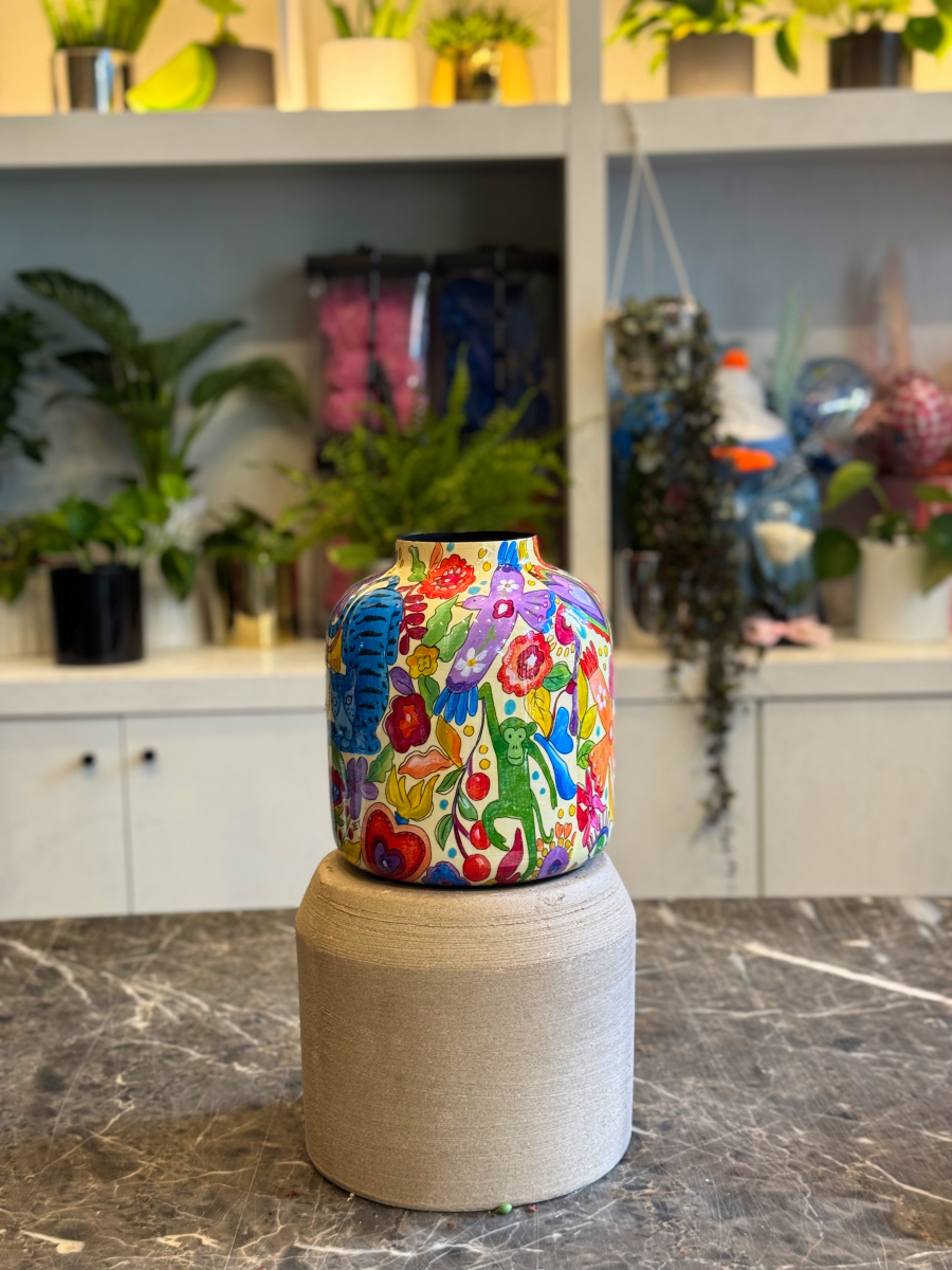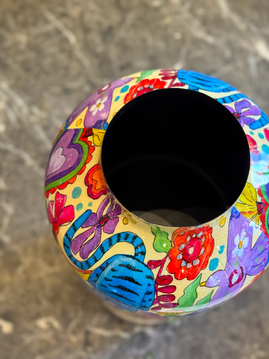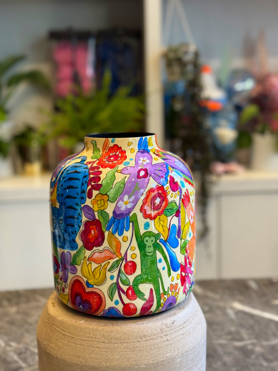 Χειροποίητο Μεταλλικό Βάζο – Πολύχρωμη ζωγραφική, haute-decor αισθητική