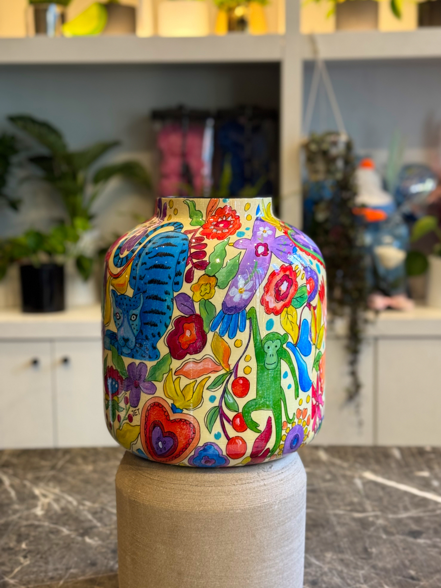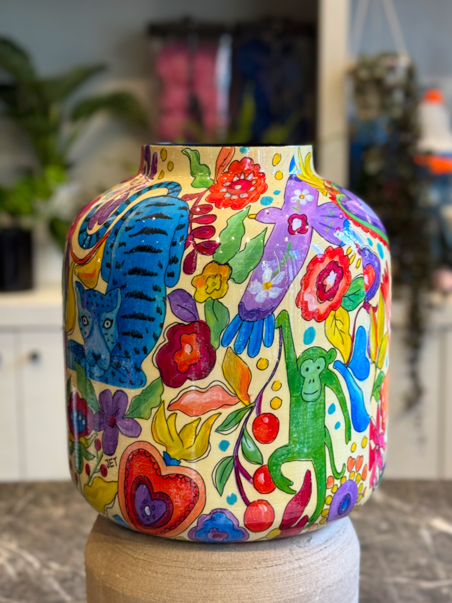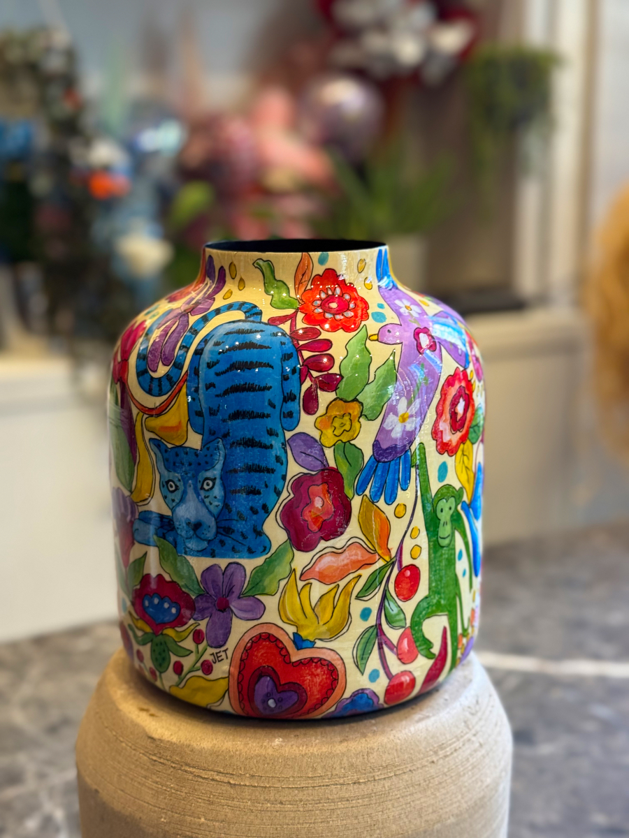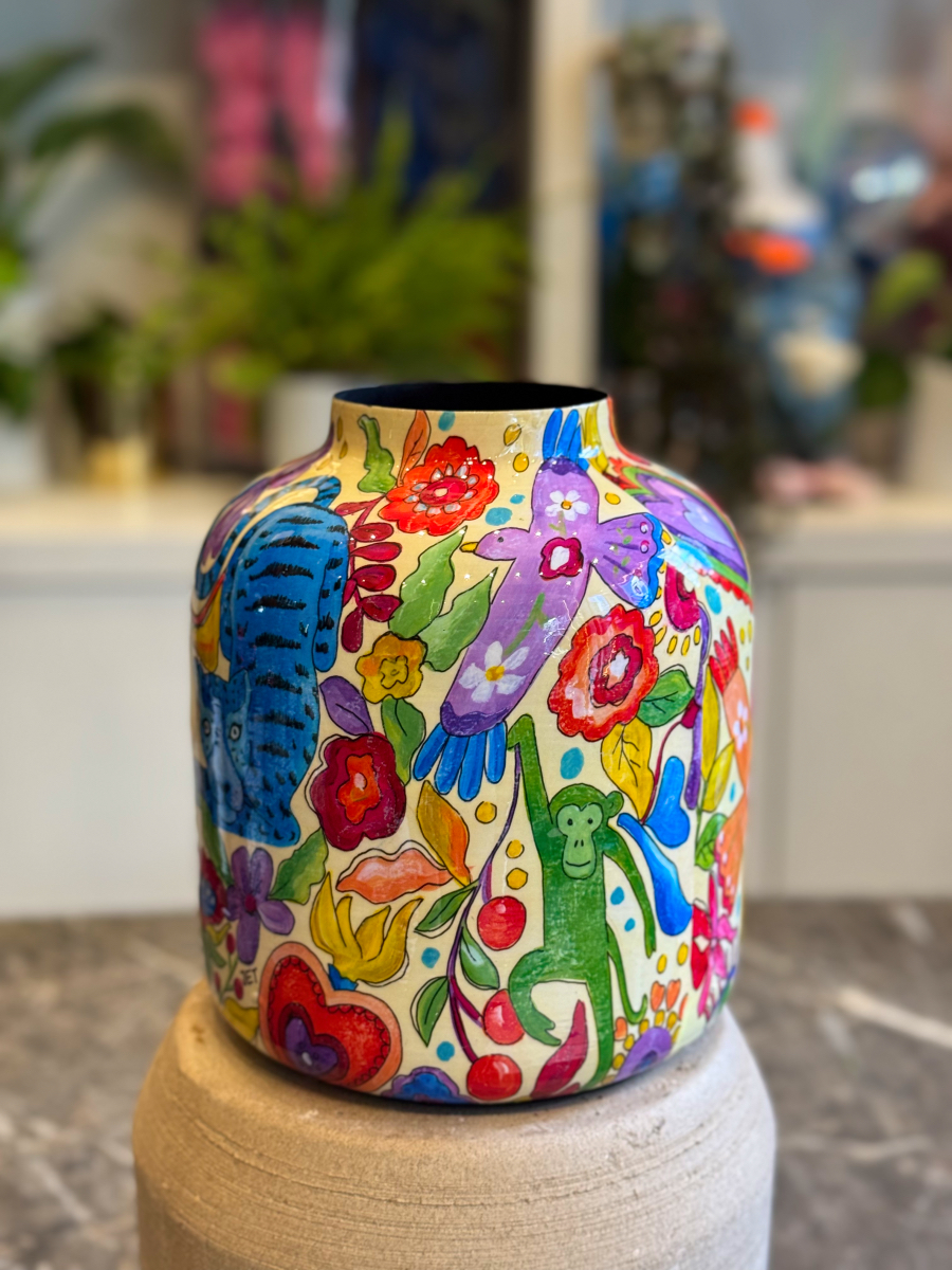 Χειροποίητο Μεταλλικό Βάζο – Πολύχρωμη ζωγραφική, haute-decor αισθητική