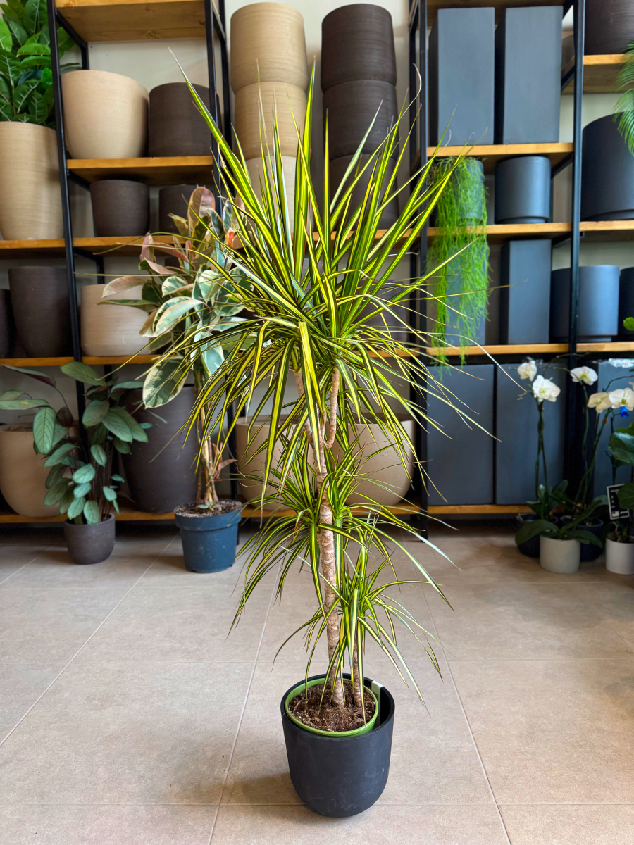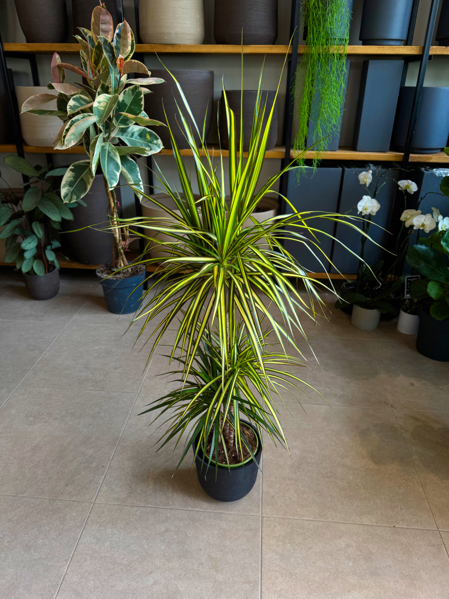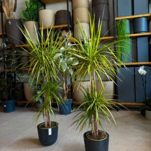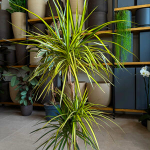 Η Dracaena marginata “Golden Dragon” είναι ένα εντυπωσιακό φυτό εσωτερικού χώρου με μακριά, λεπτά φύλλα σε πράσινες και χρυσοκίτρινες αποχρώσεις. Η επιβλητική, κατακόρυφη μορφή της προσθέτει ύψος και κομψότητα, καθιστώντας την ιδανική επιλογή για σαλόνια, γραφεία ή μοντέρνους επαγγελματικούς χώρους.