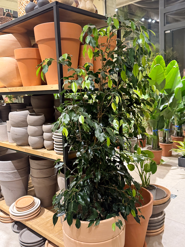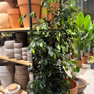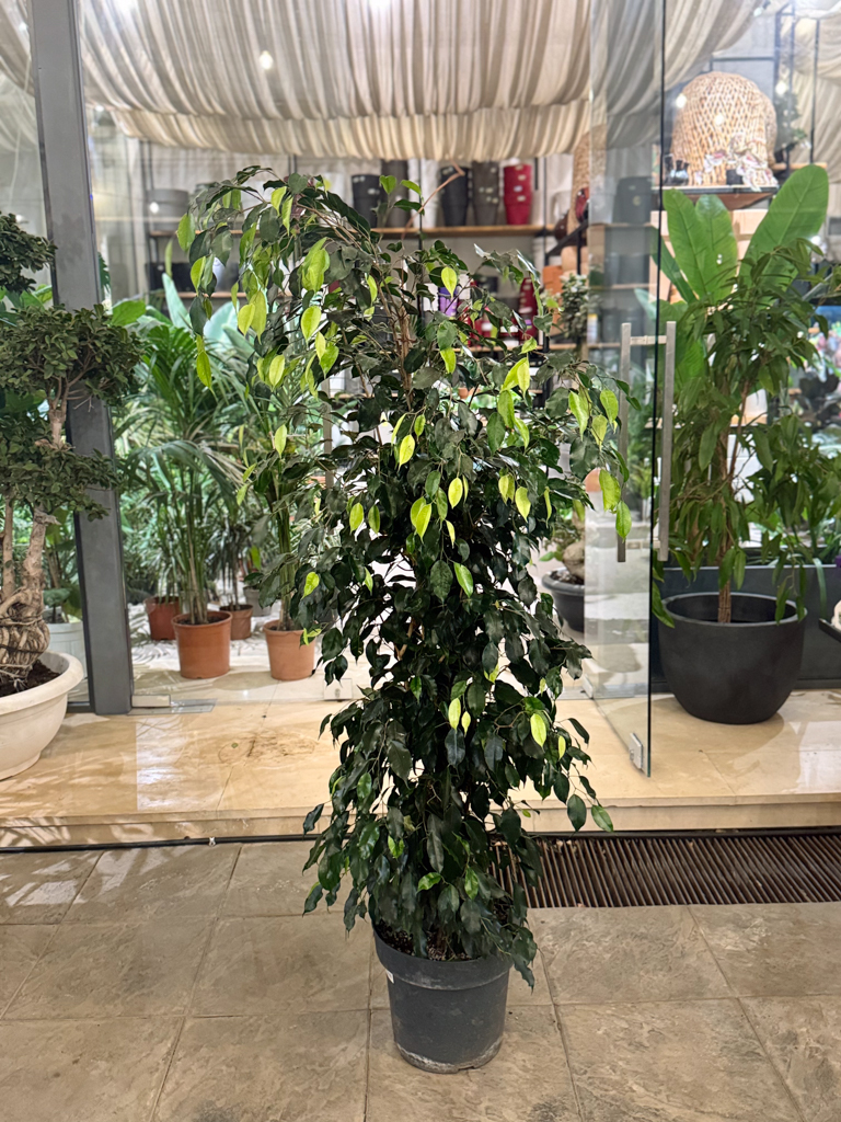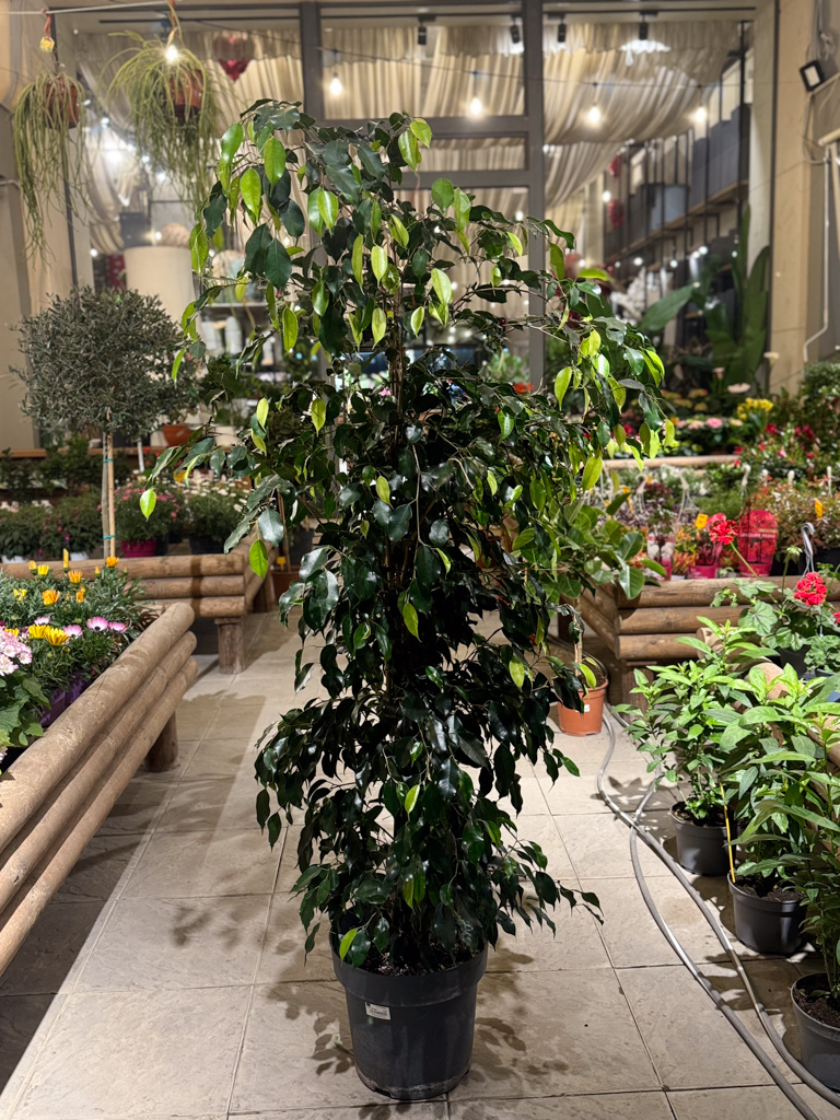 Ο Φίκος Μπέντζαμιν είναι ένα από τα πιο δημοφιλή φυτά εσωτερικού χώρου, γνωστό για το κομψό του σχήμα και το πλούσιο, γυαλιστερό φύλλωμά του. Με τα ελαφρώς κρεμαστά φύλλα του και την πυκνή του ανάπτυξη, δημιουργεί μια αίσθηση φυσικής αρμονίας και ζωντάνιας σε κάθε χώρο.