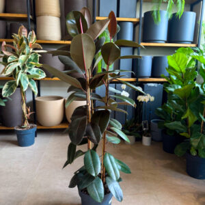 Ο Φίκος Ελάστικα ‘Abidjan’ (Ficus Elastica Abidjan) είναι μια ιδιαίτερα κομψή ποικιλία του κλασικού Ficus Elastica, με εντυπωσιακό σκούρο φύλλωμα και στιβαρή ανάπτυξη. Ανήκει στην οικογένεια Moraceae και είναι γνωστός για την ανθεκτικότητά του και τη μεγάλη προσαρμοστικότητα του σε συνθήκες εσωτερικού χώρου. Ιδανικός για όσους αναζητούν ένα ψηλό και επιβλητικό φυτό που συνδυάζει εύκολη φροντίδα και εντυπωσιακή αισθητική.