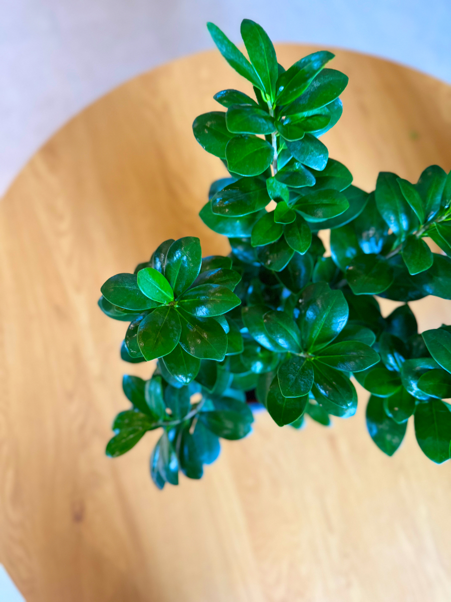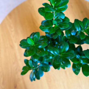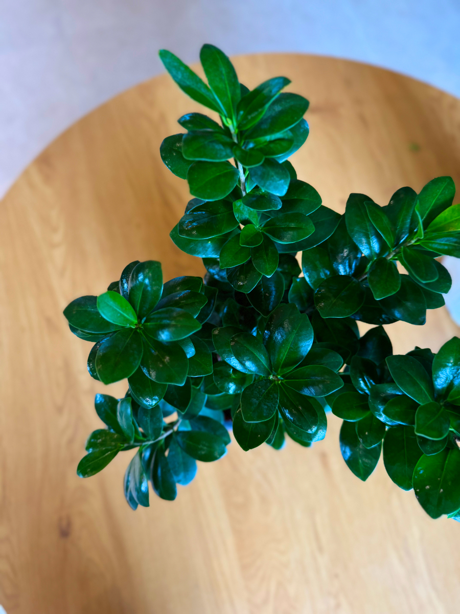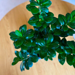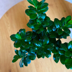 - Πυκνό φύλλωμα: Μικρά, γυαλιστερά, ωοειδή φύλλα σε πλούσια πράσινη απόχρωση.
