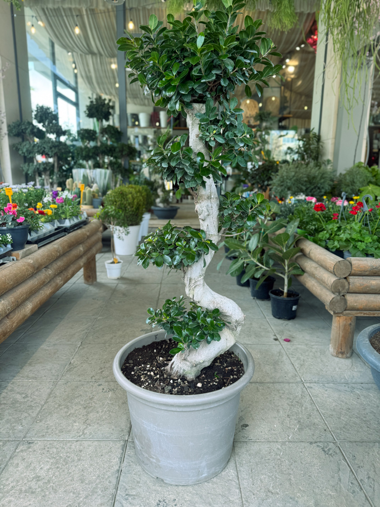 Το Ficus Microcarpa Bonsai είναι ένα εντυπωσιακό διακοσμητικό δέντρο με χαρακτηριστικό κορμό και πλούσιο, γυαλιστερό φύλλωμα. Ο ιδιαίτερος σχηματισμός του κορμού και η καλλιτεχνική διαμόρφωσή του σε στυλ μπονσάι δημιουργούν ένα κομψό και φυσικό στοιχείο διακόσμησης για κάθε χώρο.