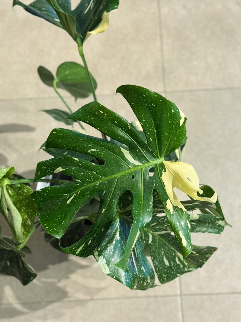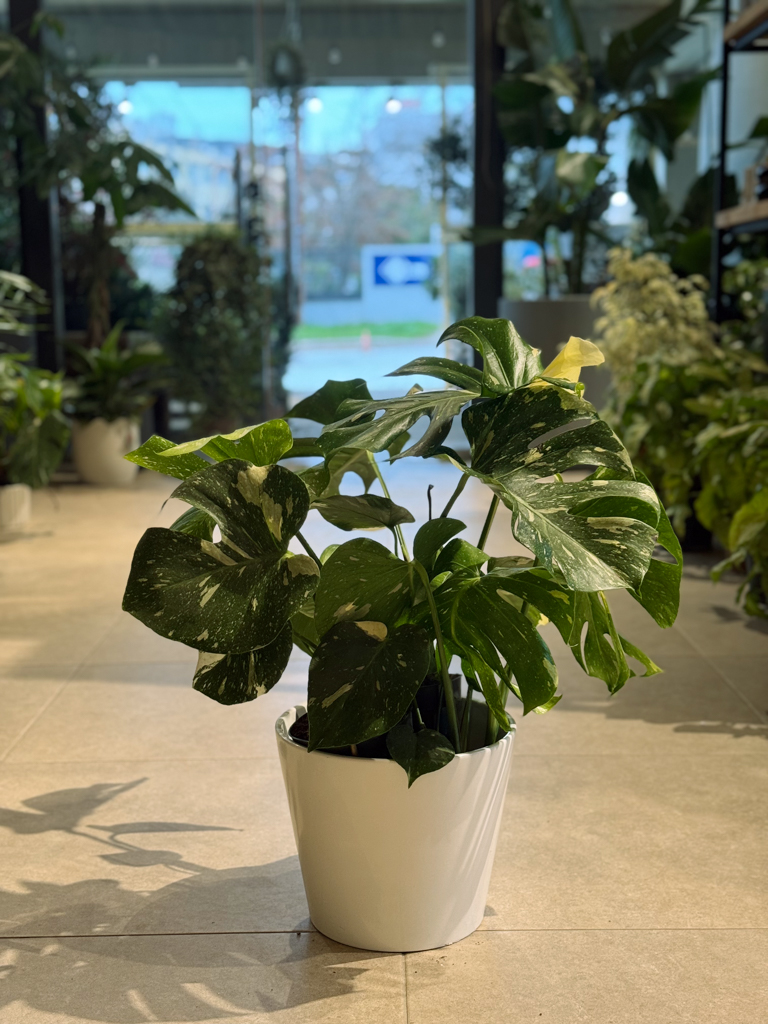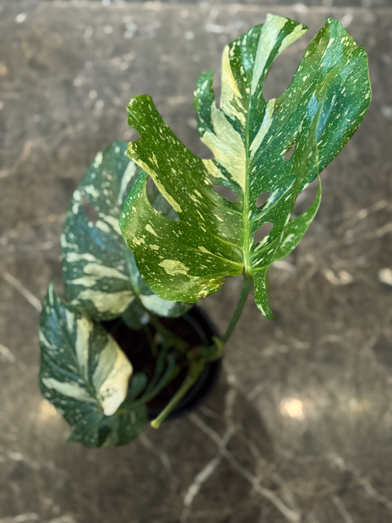 Η Monstera Deliciosa Variegata είναι ένα αειθαλές τροπικό φυτό εξαιρετικής αισθητικής, γνωστό για τα μεγάλα, γυαλιστερά και δερματώδη φύλλα της με εντυπωσιακούς λευκοπράσινους χρωματισμούς και χαρακτηριστικές φυσικές σχισμές. Κάθε φύλλο είναι μοναδικό, μετατρέποντας το φυτό σε πραγματικό διακοσμητικό έργο τέχνης.