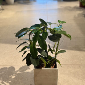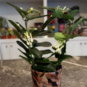 Η Στεφανωτή (Stephanotis floribunda) είναι ένα εξαιρετικά κομψό και αρωματικό αναρριχώμενο φυτό που ξεχωρίζει ανάμεσα στα φυτά εσωτερικού χώρου χάρη στο μεθυστικό άρωμα και τα λευκά άνθη σε σχήμα αστεριού. Το τροπικό της φύλλωμα είναι σκουροπράσινο, γυαλιστερό και ιδιαίτερα πυκνό, δημιουργώντας έντονη αντίθεση με τα φίνα λουλούδια της.