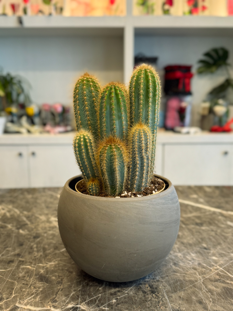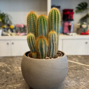 Η Pilosocereus Odilensis είναι ένας εντυπωσιακός κάκτος με όρθια ανάπτυξη και πολλαπλούς κυλινδρικούς βλαστούς που δημιουργούν μια δυναμική και μοντέρνα σύνθεση. Οι έντονες νευρώσεις και τα χρυσαφένια αγκάθια του προσδίδουν ιδιαίτερο χαρακτήρα, κάνοντάς τον ιδανικό για διακόσμηση σε εσωτερικούς χώρους.