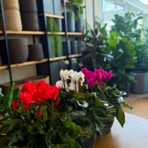 Στην έκδοση “Κυκλάμινο σε Πιατέλα”, συνδυάζονται ανθισμένα φυτά σε αποχρώσεις κόκκινου, λευκού, ροζ και μωβ,