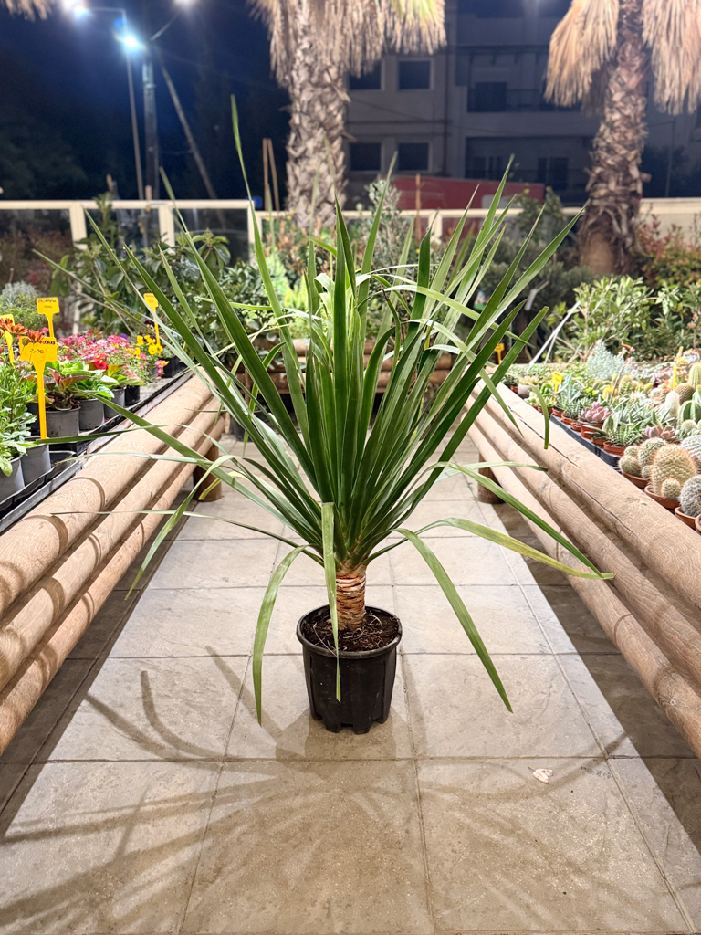 Η Δράκαινα Drago, γνωστή και ως «Δέντρο του Δράκου», είναι ένα εντυπωσιακό και ιδιαίτερο φυτό εσωτερικού ή εξωτερικού χώρου με αρχιτεκτονική μορφή και δυναμική παρουσία. Ξεχωρίζει για τον παχύ κορμό της και τα μακριά, γραμμικά φύλλα που σχηματίζουν κομψές ροζέτες, δημιουργώντας ένα εξωτικό και μοντέρνο αποτέλεσμα.