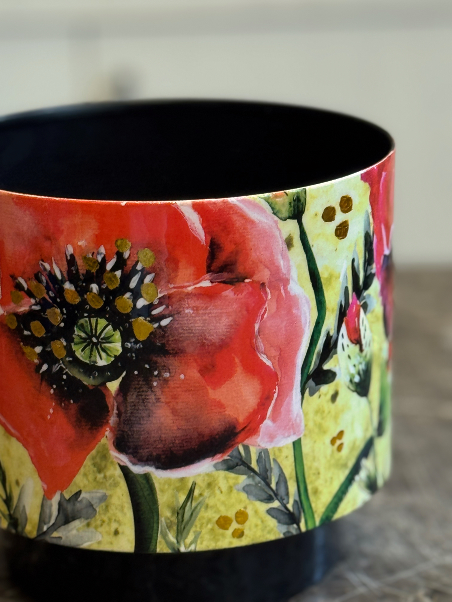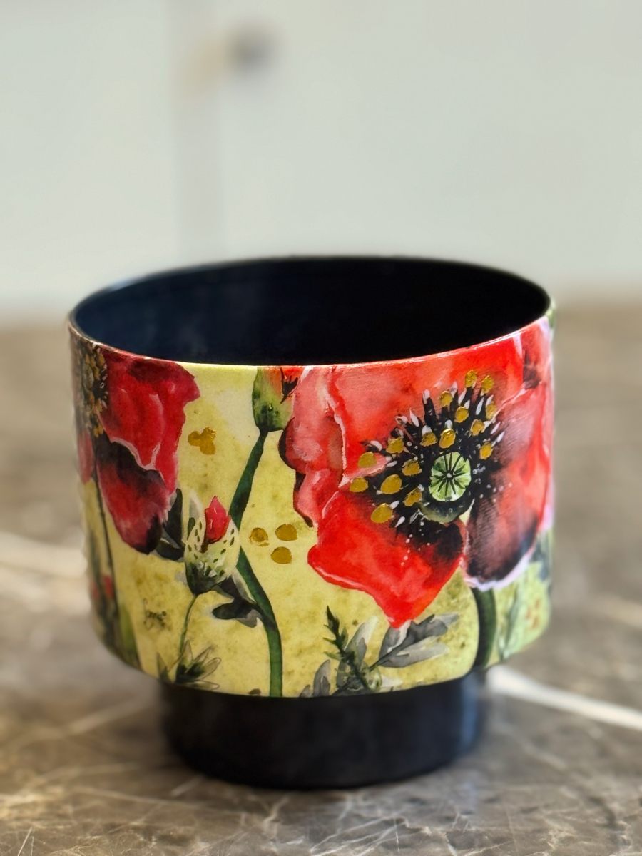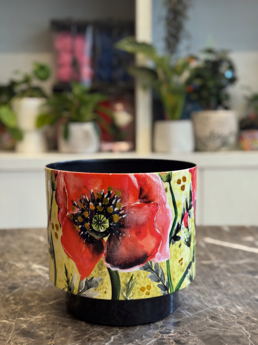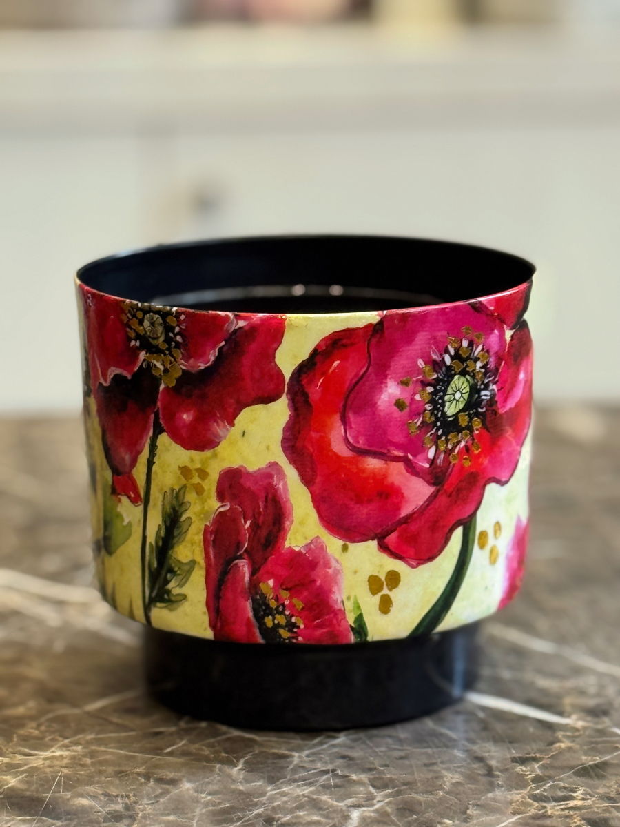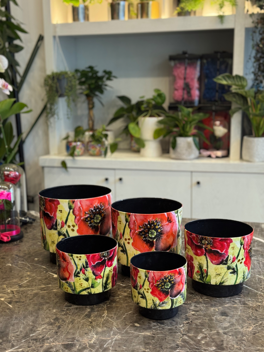 Δώστε ένταση και χρώμα στη διακόσμησή σας με το μεταλλικό κασπώ “Red Poppy”. Με μοναδικό σχέδιο από κόκκινες παπαρούνες σε φόντο ανοιχτού πράσινου, φέρνει μια αίσθηση φυσικής ομορφιάς και ζωντάνιας σε κάθε χώρο. Το γυαλιστερό του φινίρισμα και η υψηλή ποιότητα κατασκευής το καθιστούν ιδανικό τόσο για φυτά εσωτερικού χώρου όσο και ως διακοσμητικό στοιχείο από μόνο του.