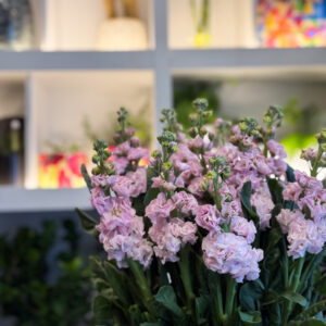 Οι βιολέτες εντυπωσιάζουν με τα πυκνά τους άνθη, που αναπτύσσονται καθ’ ύψος σε στιβαρούς, καταπράσινους μίσχους. Η υφή τους είναι απαλή, σχεδόν βελούδινη, και κάθε κλωνάρι μοιάζει να αφηγείται τη δική του ιστορία κομψότητας. Διατίθενται σε αποχρώσεις ροζ, λιλά, σομόν και λευκό, αλλά και σε μίξη χρωμάτων για πιο παιχνιδιάρικη και φωτεινή σύνθεση. Το άρωμά τους είναι χαρακτηριστικό, απαλό αλλά με διάρκεια, γεμίζοντας τον χώρο με μια αίσθηση καθαρότητας και φρεσκάδας. Συνδυασμένες με πρασινάδες ή με άλλα λουλούδια, όπως τον λυσίανθο, δημιουργούν ανθοδέσμες που εκπέμπουν αρμονία και φως.