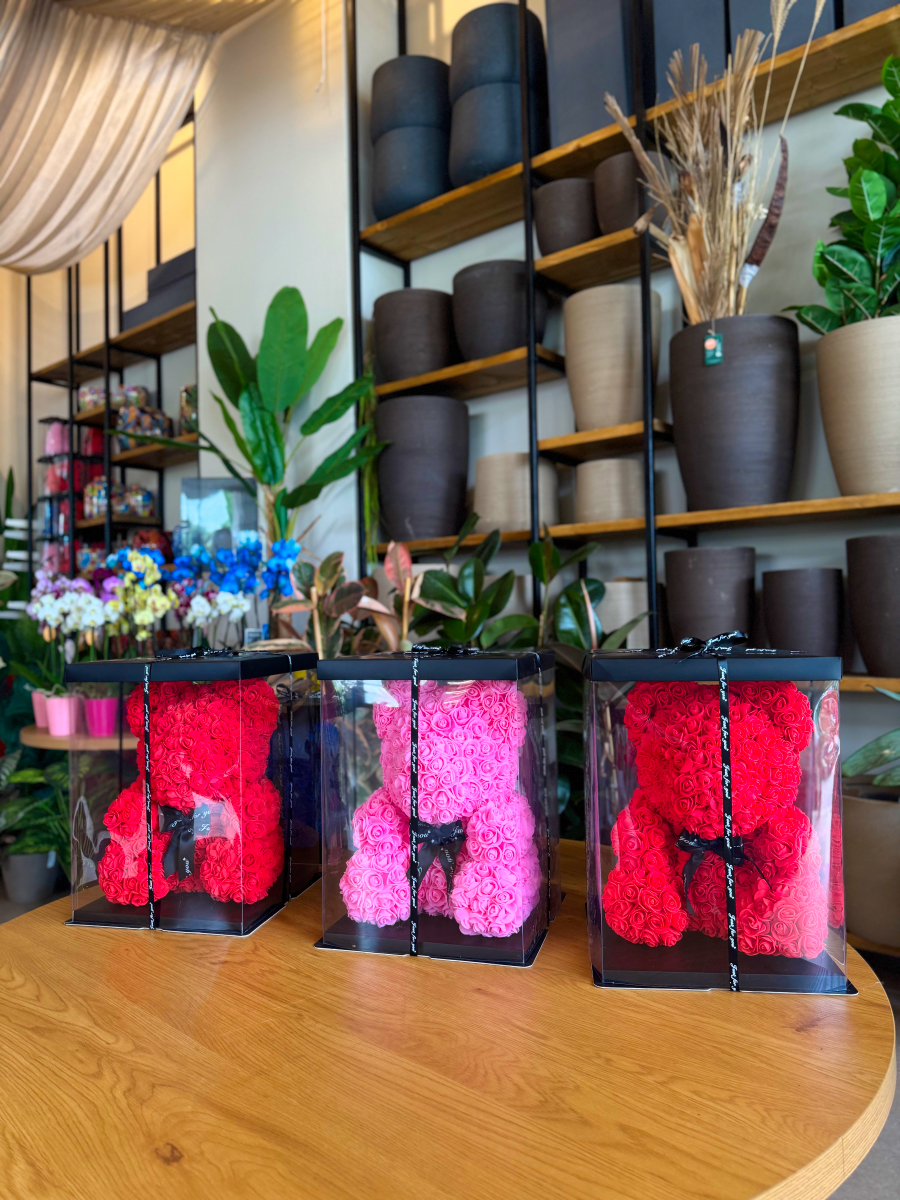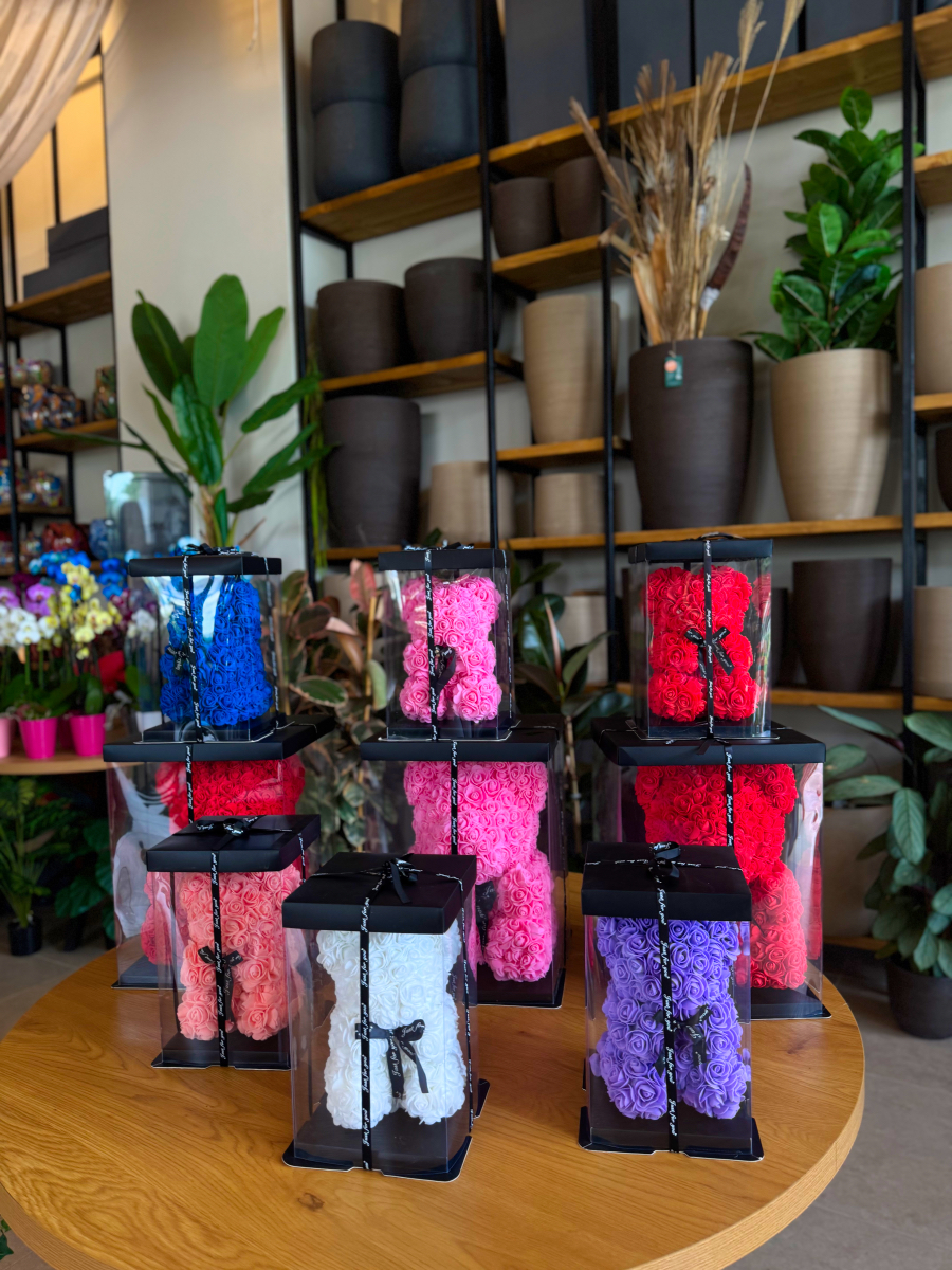 Ένα διαφορετικό είδος δώρου . Ένα γλυκό , λαχταριστό και παιχνιδιάρικο αρκουδάκι από τριαντάφυλλα . Μια πολύ γλυκιά κίνηση εκδήλωσης της αγάπης σας . Διακριτική και συνάμα γεμάτη νόημα . Μια επιλογή που θα μείνει για πάντα στο χώρο του αγαπημένου σας προσώπου .