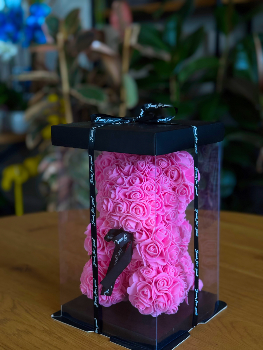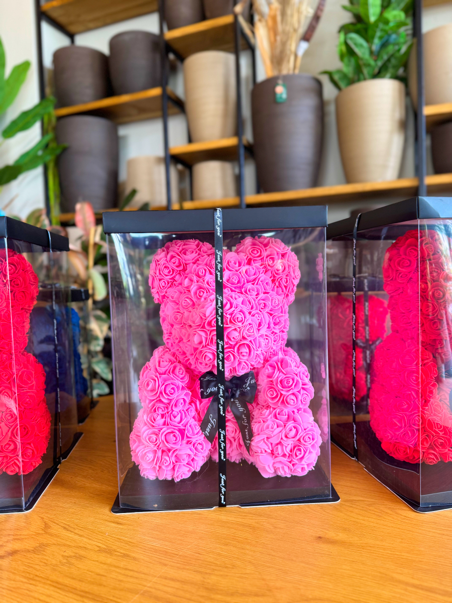 Αρκουδάκι από Τριαντάφυλλα Φούξια Μεγάλο - Rose Bear Fuchsia Large
