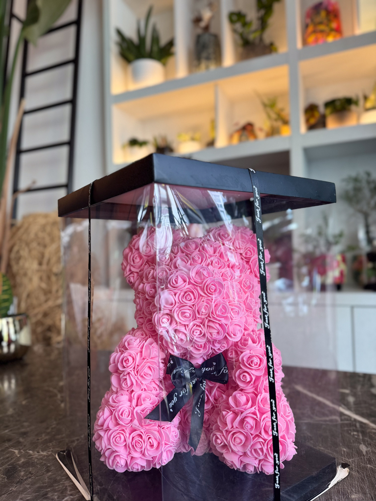 Αρκουδάκι από Τριαντάφυλλα Ροζ Μεγάλο - Rose Bear Pink Large