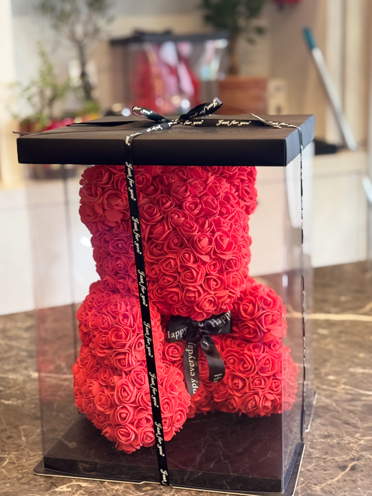 Αρκουδάκι από Τριαντάφυλλα Κόκκινο Μεγάλο- Rose Bear Red Large