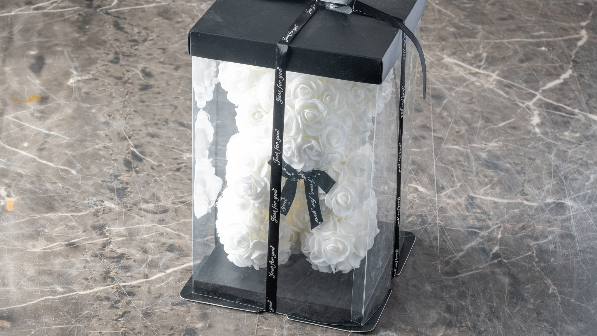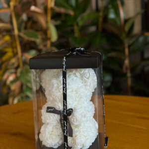 Αρκουδάκι από Τριαντάφυλλα Λευκο Μεγάλο-Rose Bear White Large